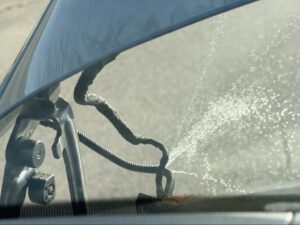Es folgten ehrlicherweise zu viele Wintertage, an denen ich sehr strategisch vorgehen musste, um meine Scheibe sauber zu bekommen. In der Praxis heißt das, bei Schnee und salziger Straße sehr darauf achten, dass man erst dann wischt, wenn genügend Feuchtigkeit auf der verkrusteten Scheibe ist und im Zweifel lieber hinter dem zu langsamen Vordermann bleiben, wenn man dafür vom aufgewirbelten Wasser ein bisschen mehr Sicht bekommt. Oder im anderen Fall sehr viel Abstand zu halten, um auf die einigermaßen saubere Scheibe kein Salzgemisch zu bekommen. Die Chancen standen eigentlich ganz gut, das so bis zum Sommer durchzuziehen, irgendwann packte mich dann aber doch die Motivation und ich begann zu recherchieren, welche Möglichkeiten ich zur Reparatur hätte.
